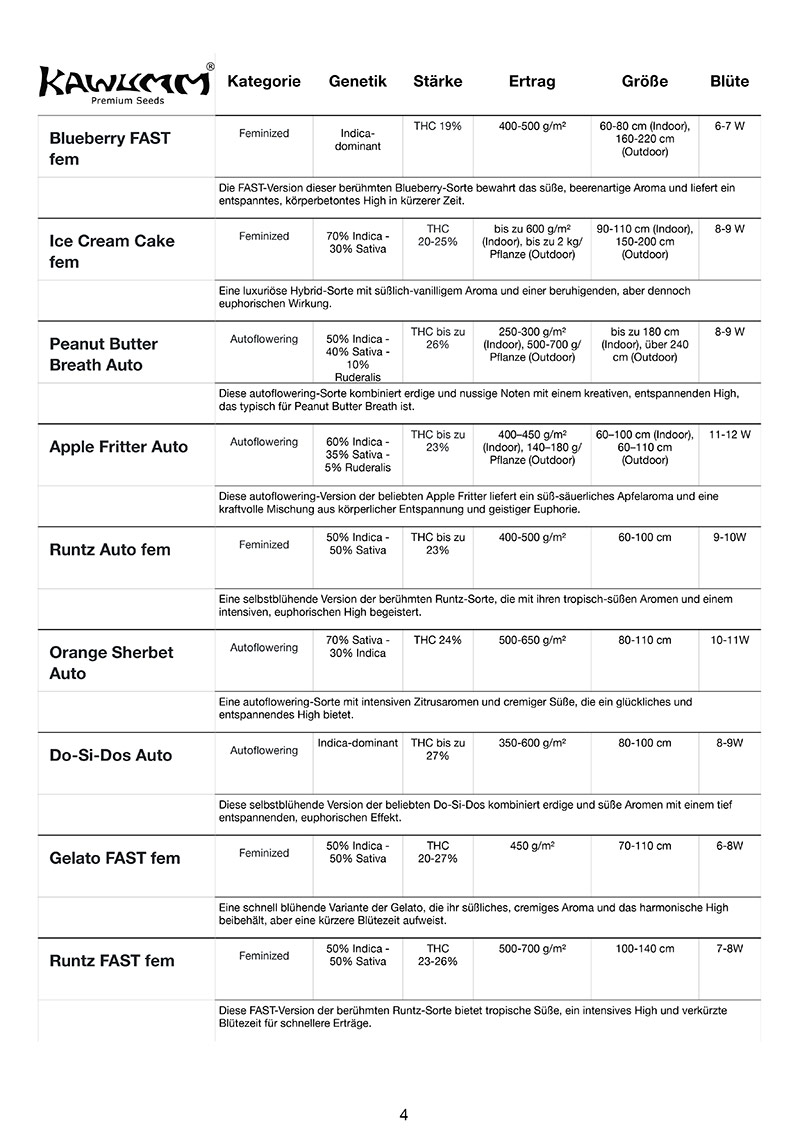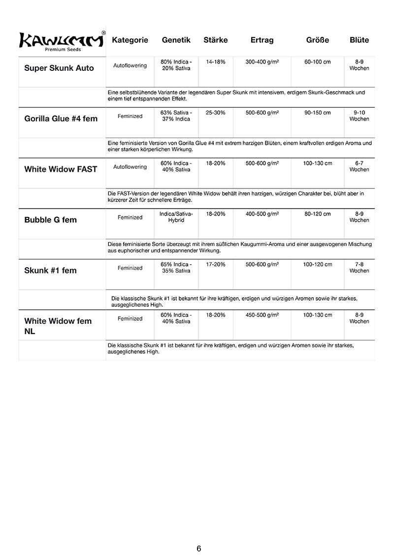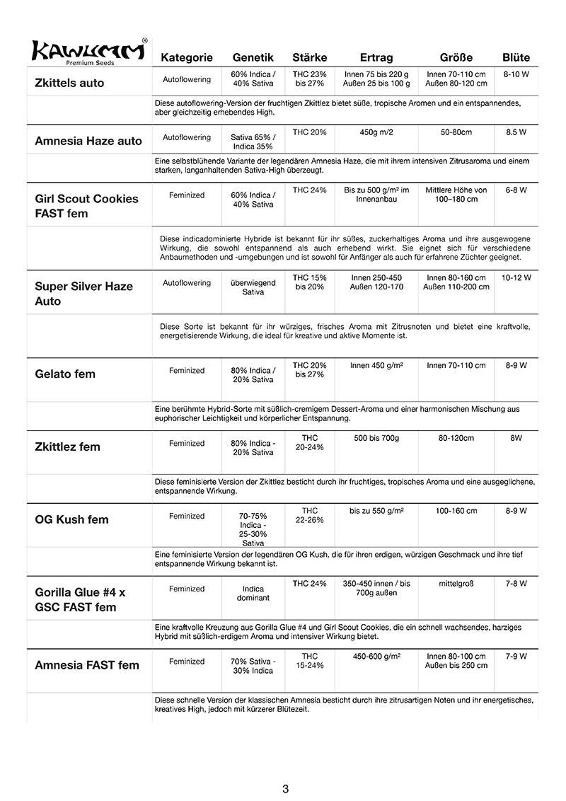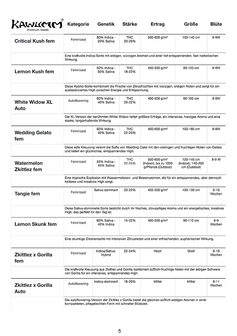 Aromen, Wirkungen und Anbaueigenschaften findest Du in der Übersicht auf dieser Seite.